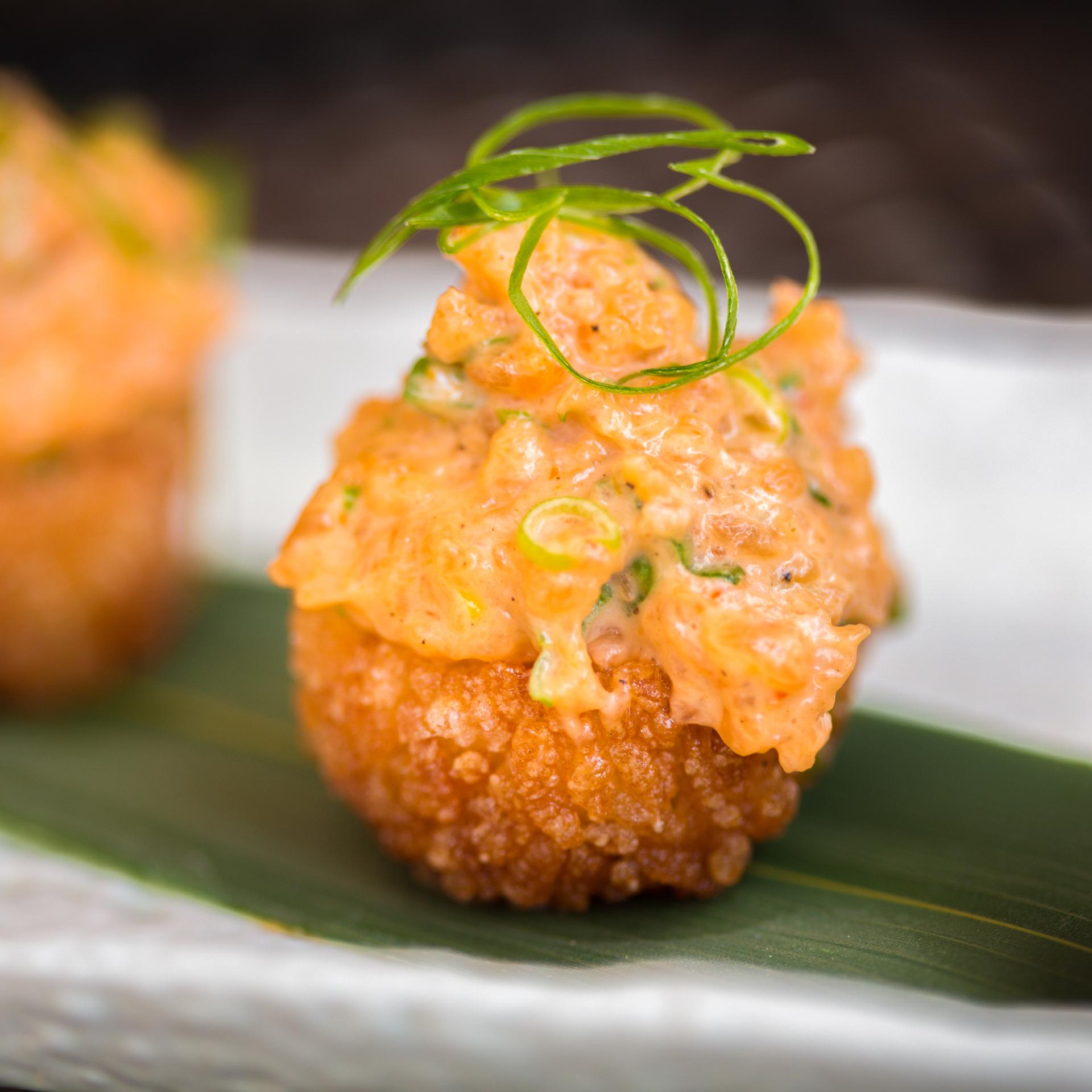 Chili-Hackbällchen in Tempurateig mit Mango-Dip